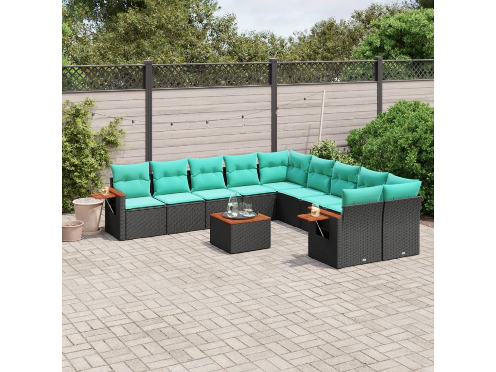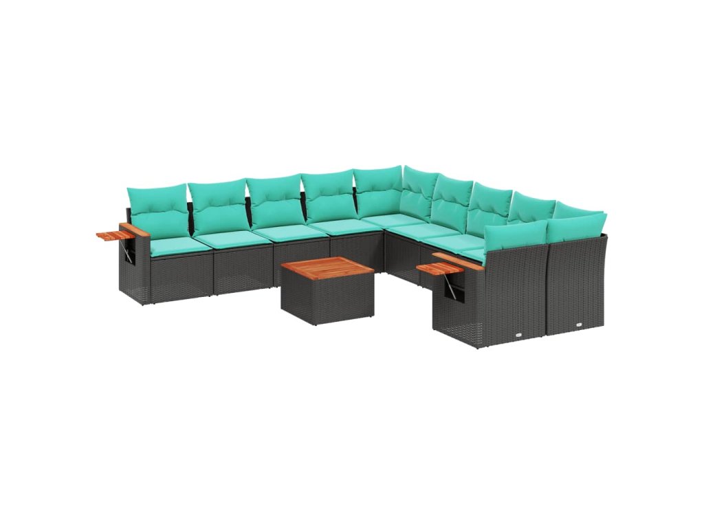 11dílná zahradní sedací souprava s poduškami černá polyratan 3227198