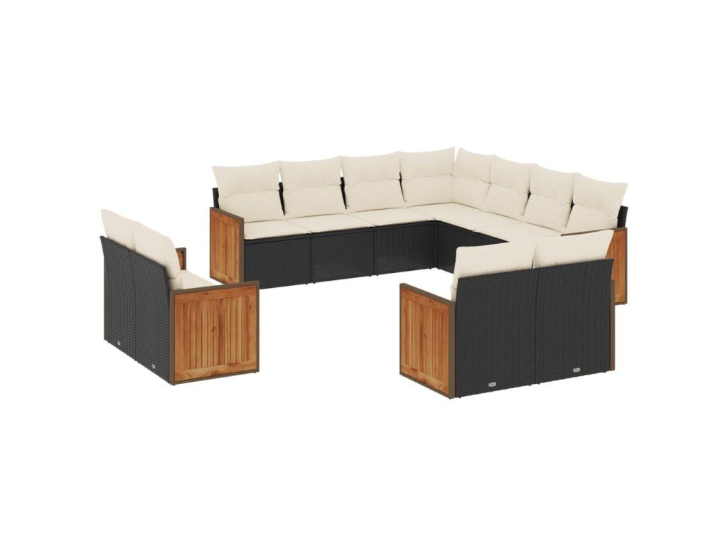 11dílná zahradní sedací souprava s poduškami černá polyratan 3228177