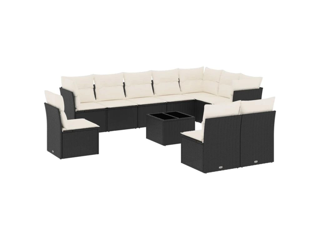 11dílná zahradní sedací souprava s poduškami černá polyratan 3249645