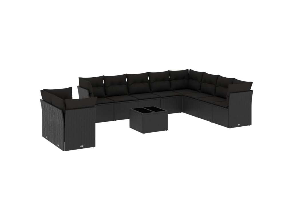 11dílná zahradní sedací souprava s poduškami černá polyratan 3249704