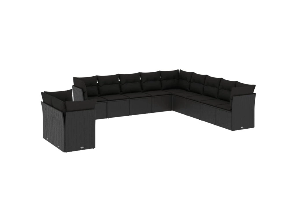 11dílná zahradní sedací souprava s poduškami černá polyratan 3249714