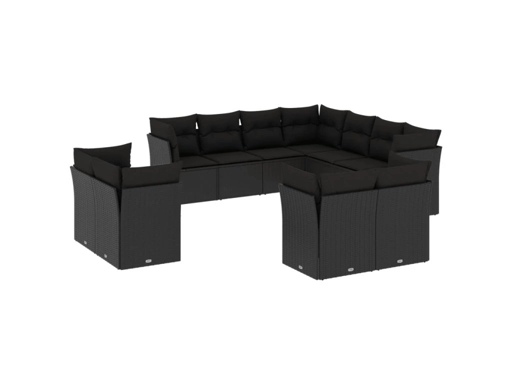 11dílná zahradní sedací souprava s poduškami černá polyratan 3250344