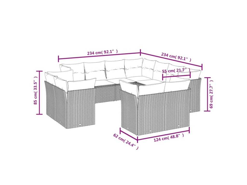 Tato zahradní sedací souprava je dokonalým doplňkem vaší zahrady, terasy nebo dvorku a poskytne vám pohodlné a příjemné místo, kde si můžete povídat s rodinou a přáteli nebo jen tak odpočívat a užívat si pobyt venku.