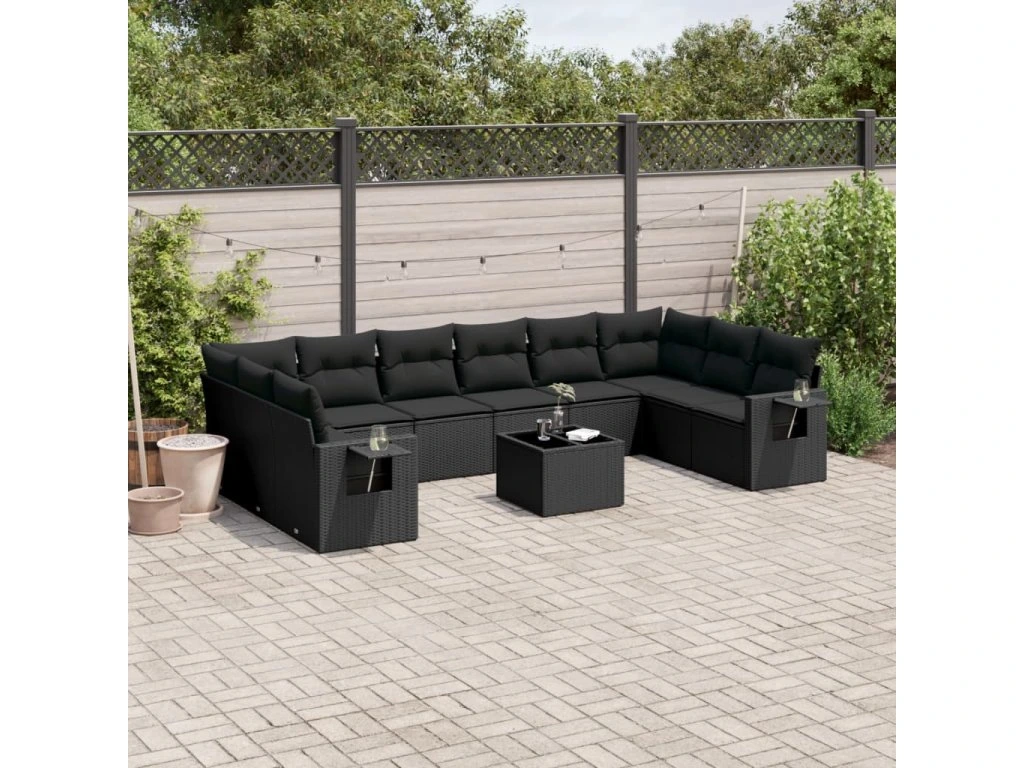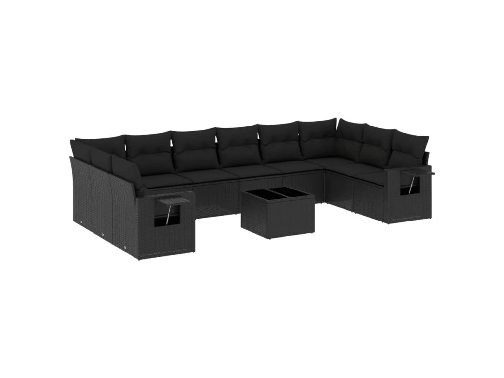 11dílná zahradní sedací souprava s poduškami černá polyratan 3253012