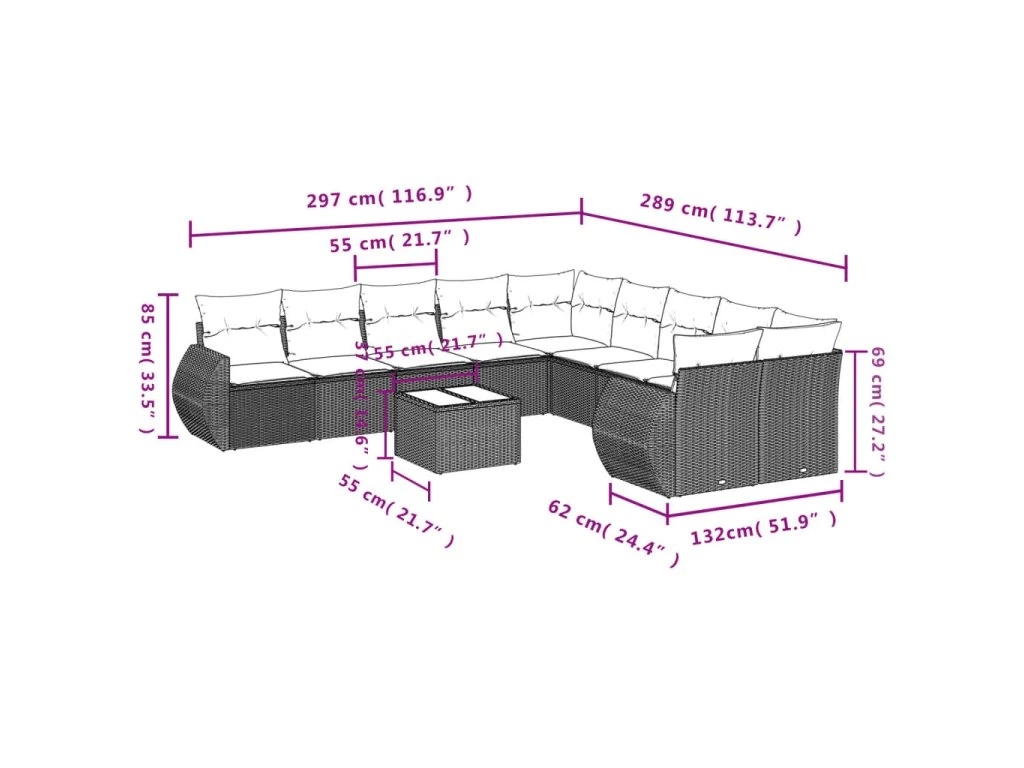 11dílná zahradní sedací souprava s poduškami černá polyratan 3254252