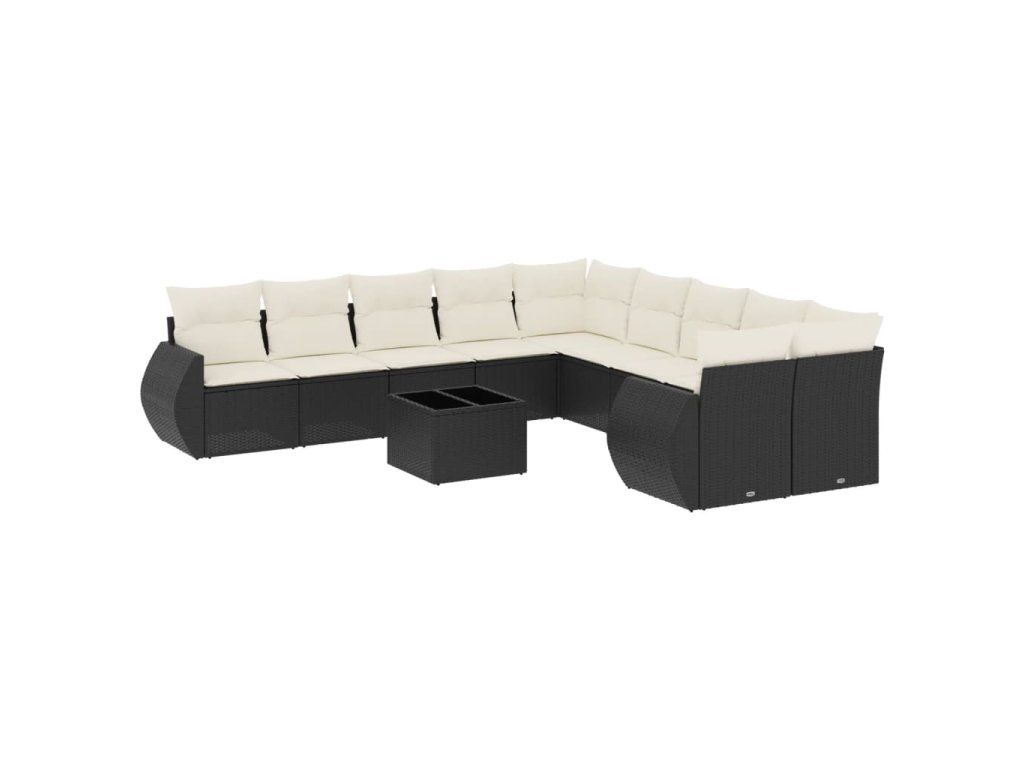 11dílná zahradní sedací souprava s poduškami černá polyratan 3254253
