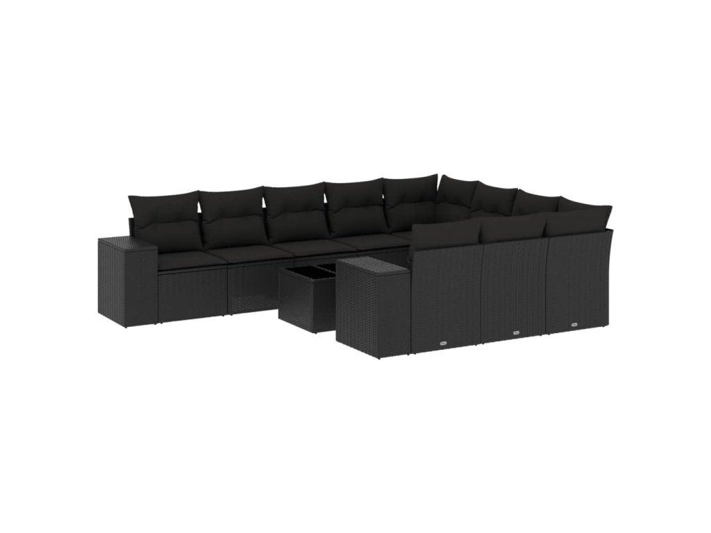 11dílná zahradní sedací souprava s poduškami černá polyratan 3255432