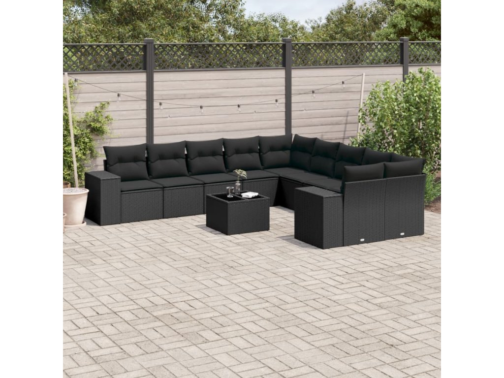 11dílná zahradní sedací souprava s poduškami černá polyratan 3255452