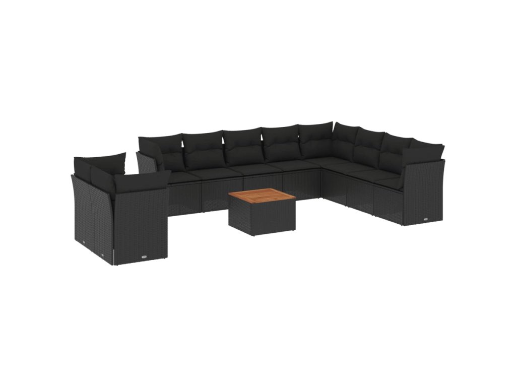 11dílná zahradní sedací souprava s poduškami černá polyratan 3256048