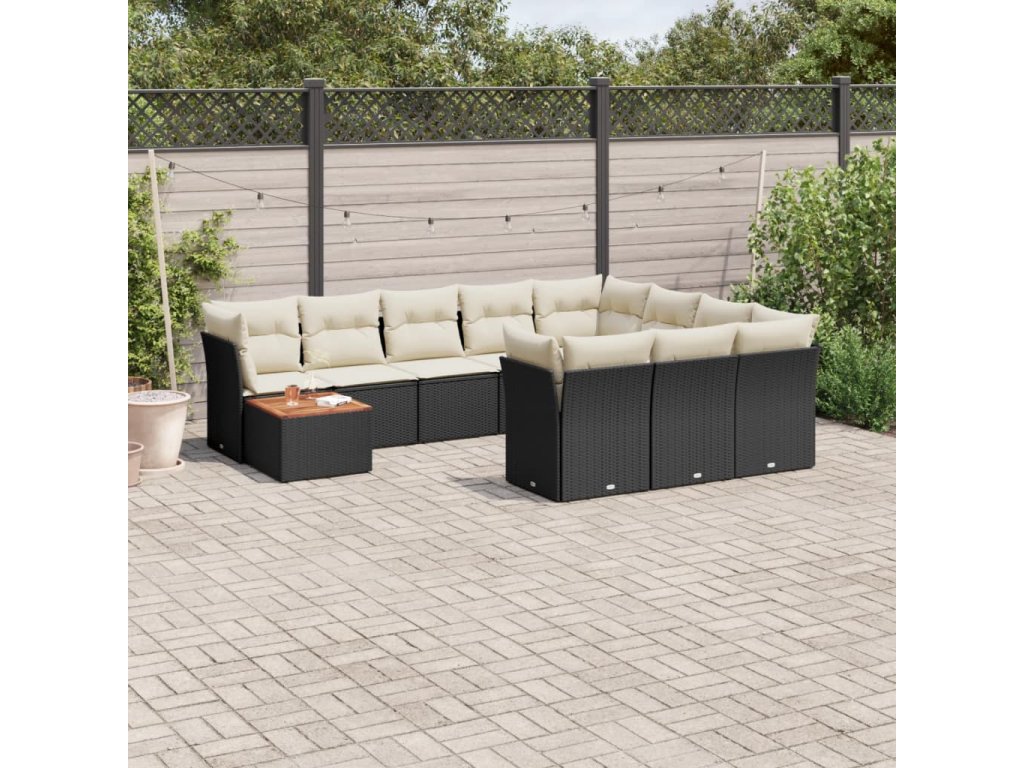 11dílná zahradní sedací souprava s poduškami černá polyratan 3256175