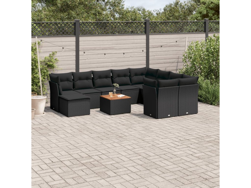 11dílná zahradní sedací souprava s poduškami černá polyratan 3256300
