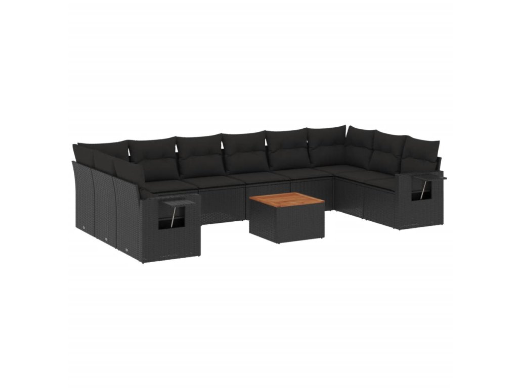 11dílná zahradní sedací souprava s poduškami černá polyratan 3257063