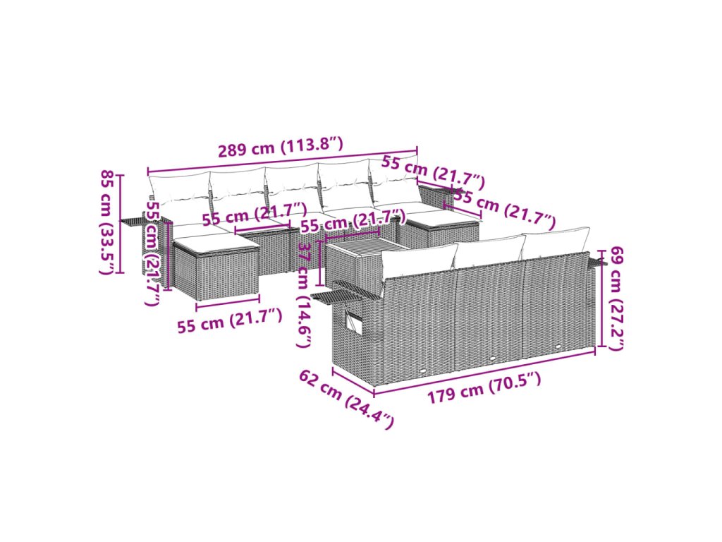 11dílná zahradní sedací souprava s poduškami černá polyratan 3257113