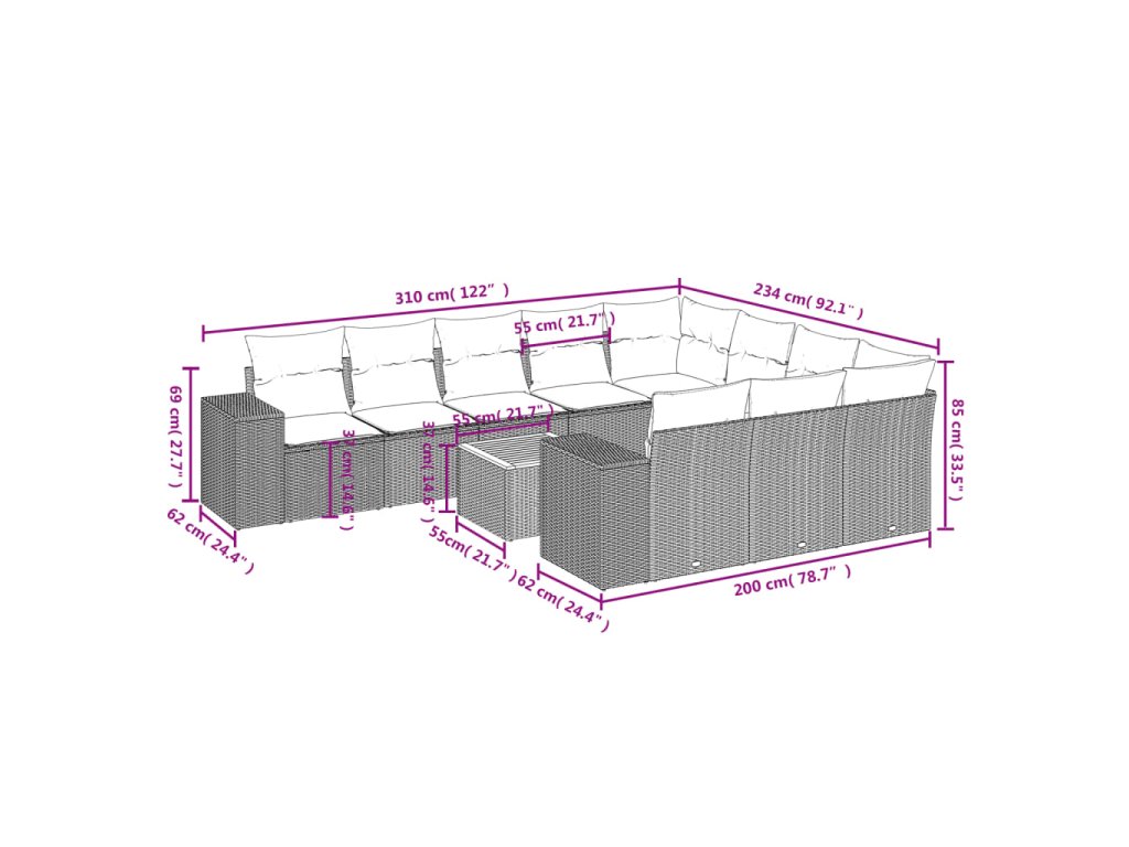 Tato zahradní sedací souprava je dokonalým doplňkem vaší zahrady, terasy nebo dvorku a poskytne vám pohodlné a příjemné místo, kde si můžete povídat s rodinou a přáteli nebo jen tak odpočívat a užívat si pobyt venku.