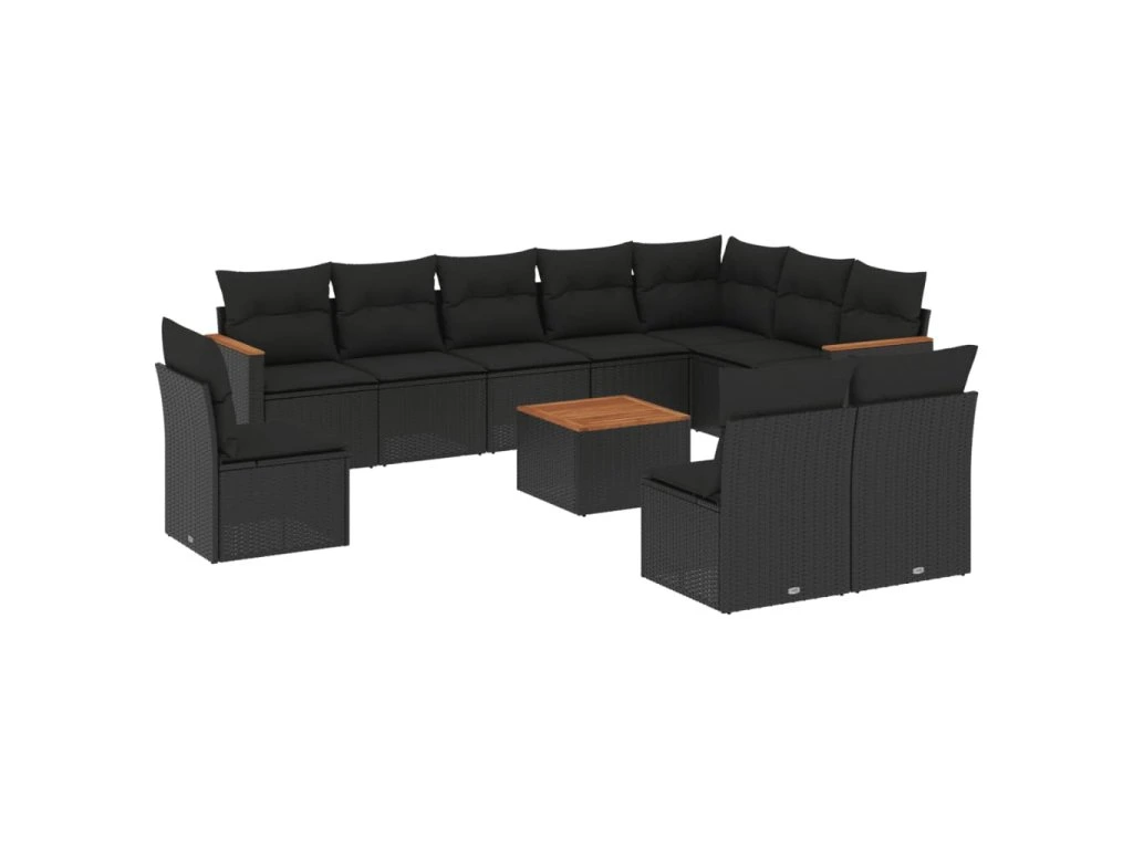 11dílná zahradní sedací souprava s poduškami černá polyratan 3258478