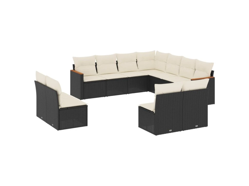 11dílná zahradní sedací souprava s poduškami černá polyratan 3258486