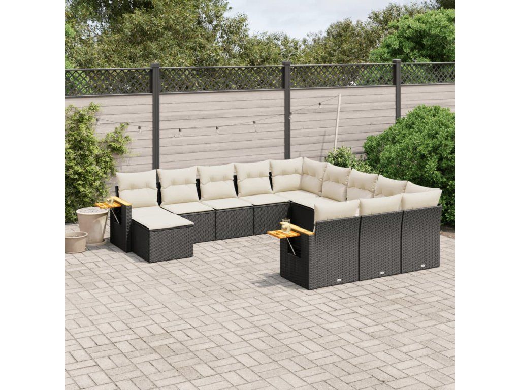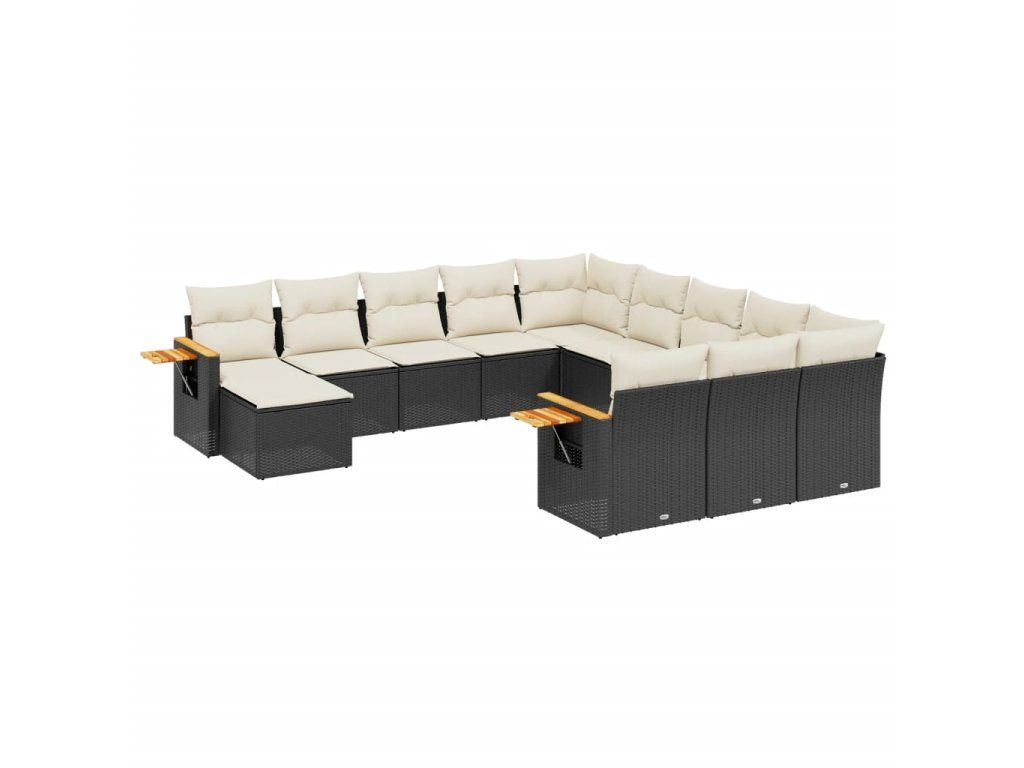 11dílná zahradní sedací souprava s poduškami černá polyratan 3259606