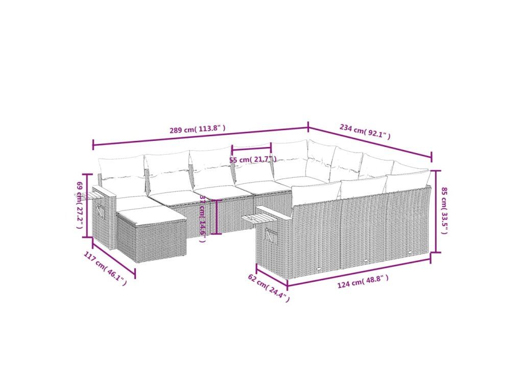 Tato zahradní sedací souprava je dokonalým doplňkem vaší zahrady, terasy nebo dvorku a poskytne vám pohodlné a příjemné místo, kde si můžete povídat s rodinou a přáteli nebo jen tak odpočívat a užívat si pobyt venku.
