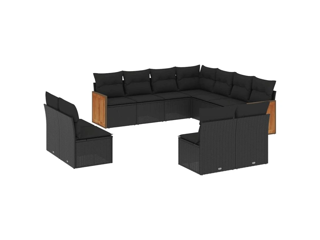 11dílná zahradní sedací souprava s poduškami černá polyratan 3260165