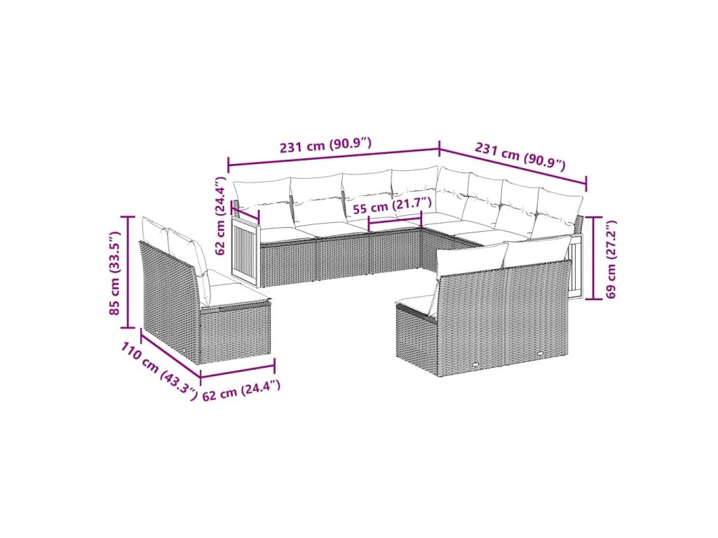 Tato zahradní sedací souprava je dokonalým doplňkem vaší zahrady, terasy nebo dvorku a poskytne vám pohodlné a příjemné místo, kde si můžete povídat s rodinou a přáteli nebo jen tak odpočívat a užívat si pobyt venku.