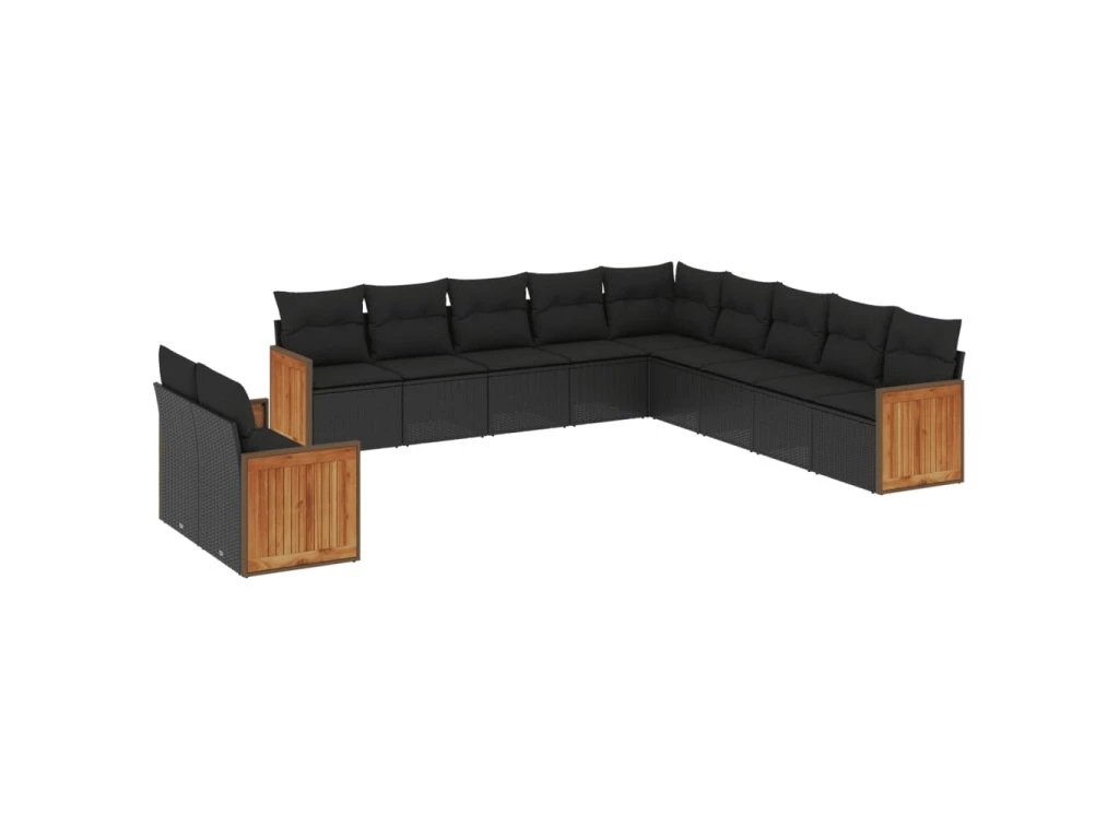11dílná zahradní sedací souprava s poduškami černá polyratan 3260207