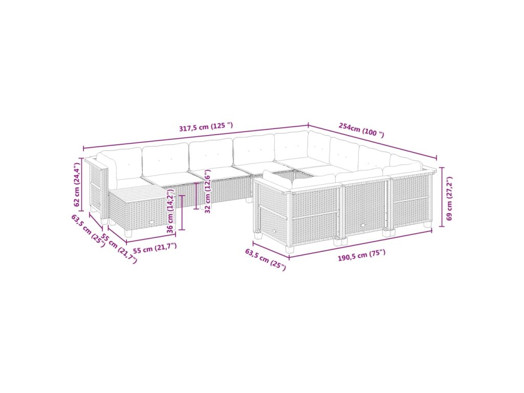 11dílná zahradní sedací souprava s poduškami černá polyratan 3262055