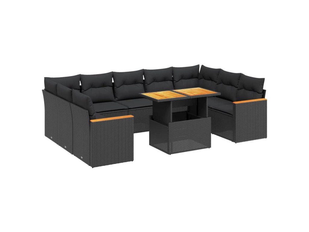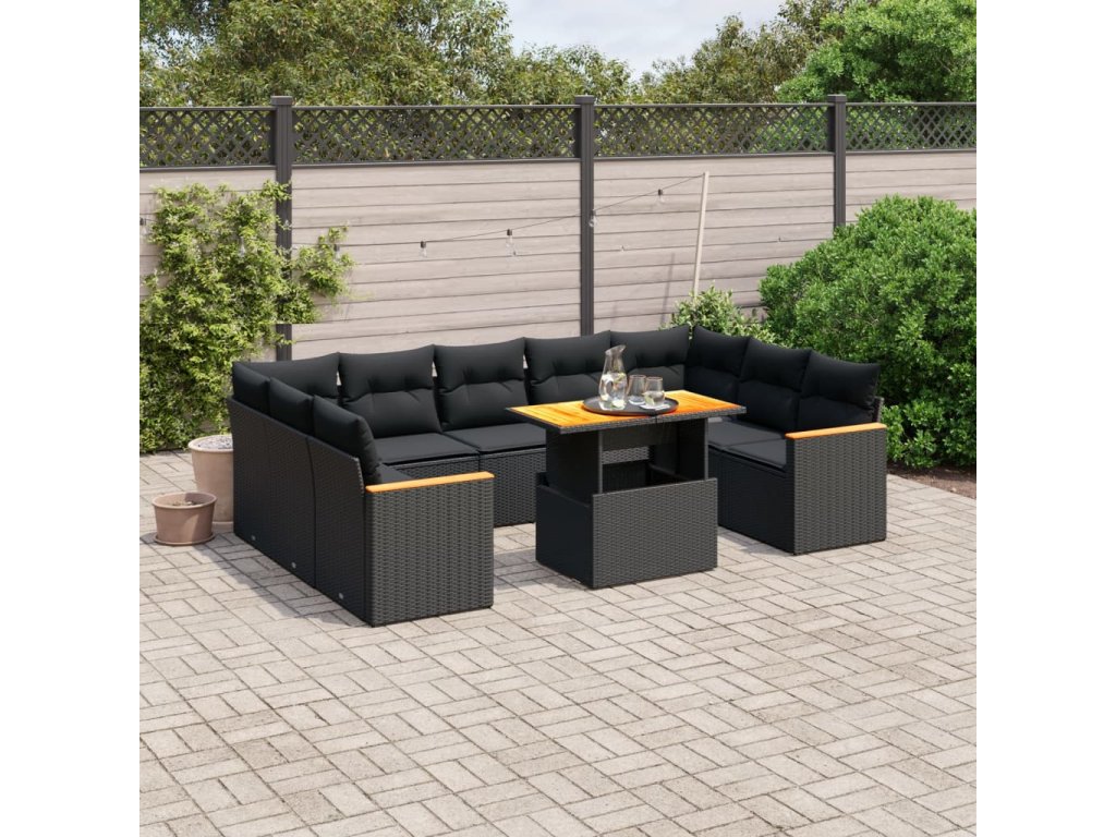 11dílná zahradní sedací souprava s poduškami černá polyratan 3273246