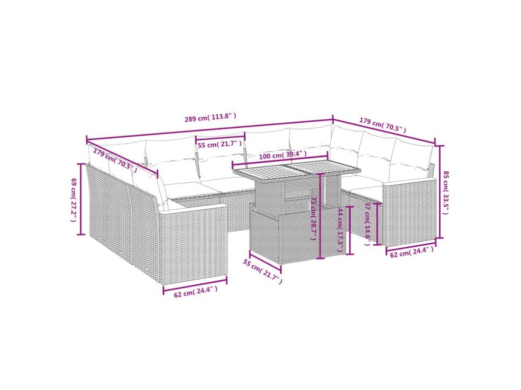Tato zahradní sedací souprava je dokonalým doplňkem vaší zahrady, terasy nebo dvorku a poskytne vám pohodlné a příjemné místo, kde si můžete povídat s rodinou a přáteli nebo jen tak odpočívat a užívat si pobyt venku.