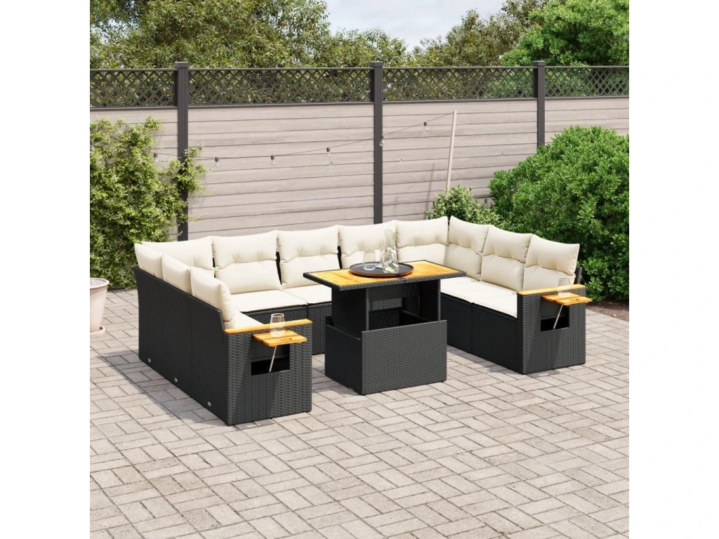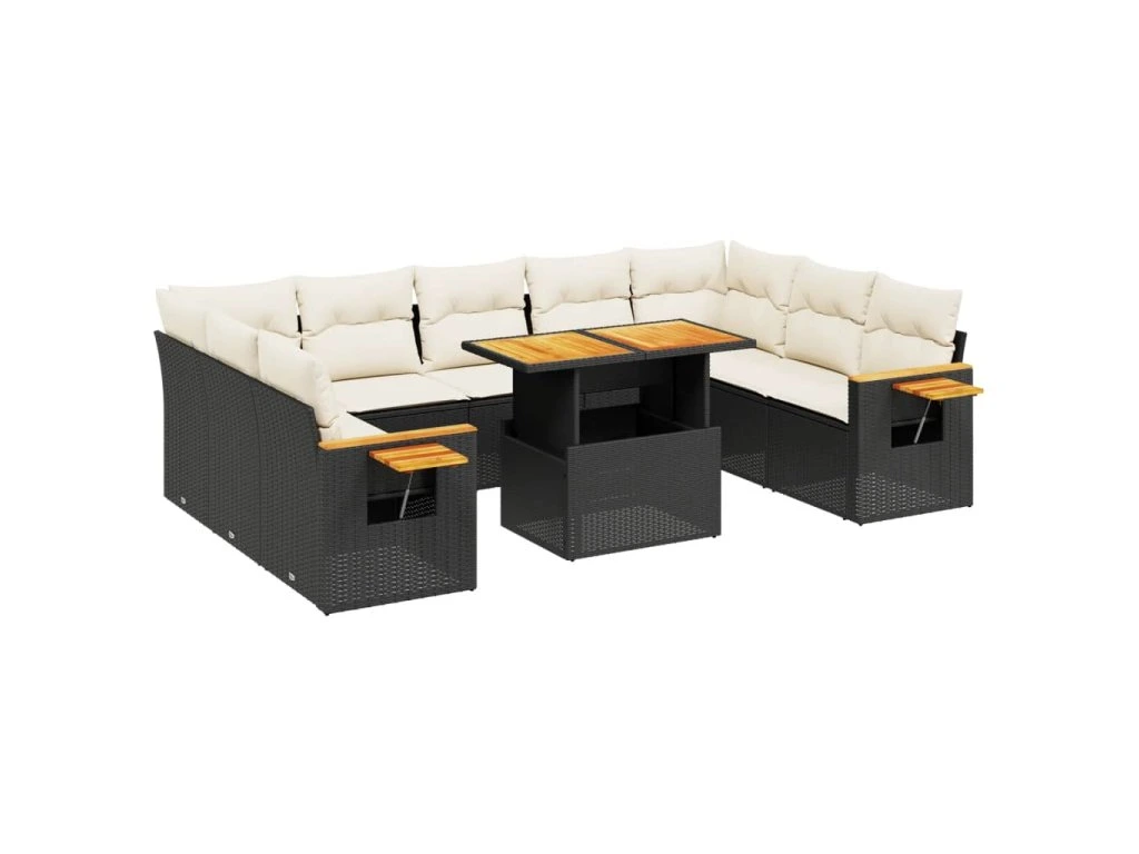 11dílná zahradní sedací souprava s poduškami černá polyratan 3273688