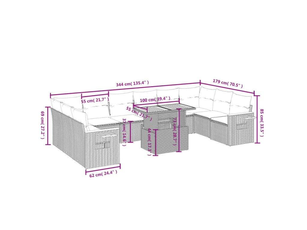 Tato zahradní sedací souprava je dokonalým doplňkem vaší zahrady, terasy nebo dvorku a poskytne vám pohodlné a příjemné místo, kde si můžete povídat s rodinou a přáteli nebo jen tak odpočívat a užívat si pobyt venku.
