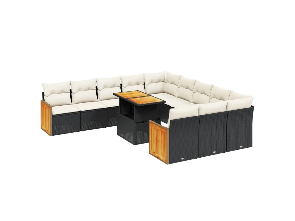 11dílná zahradní sedací souprava s poduškami černá polyratan 3274143