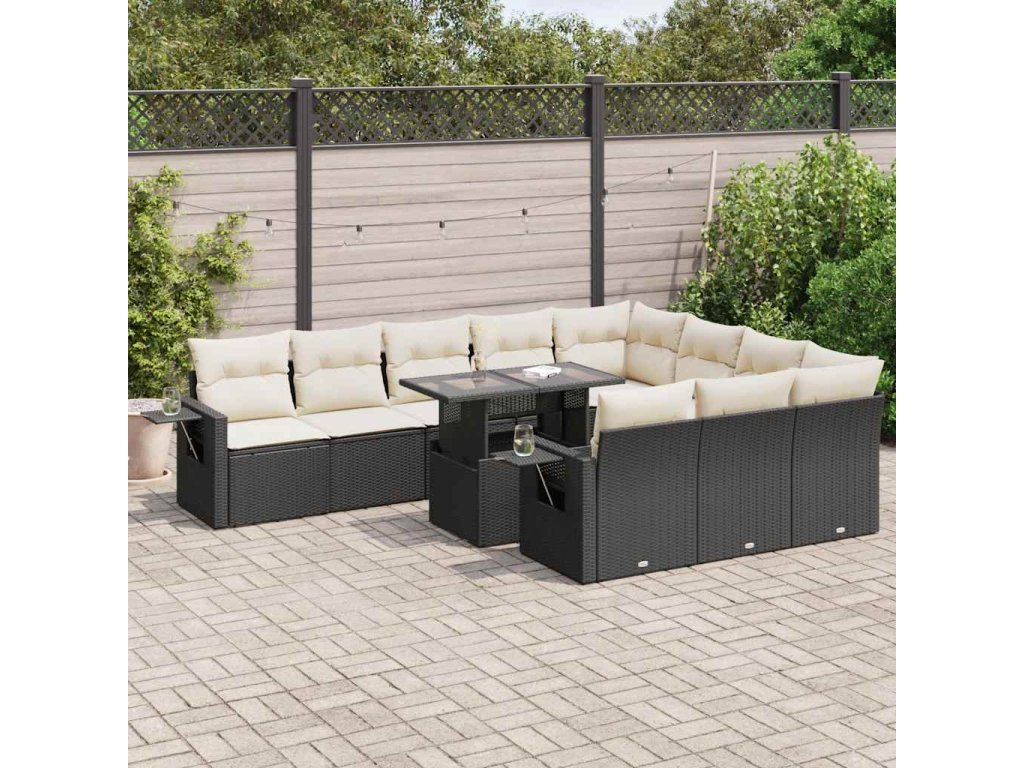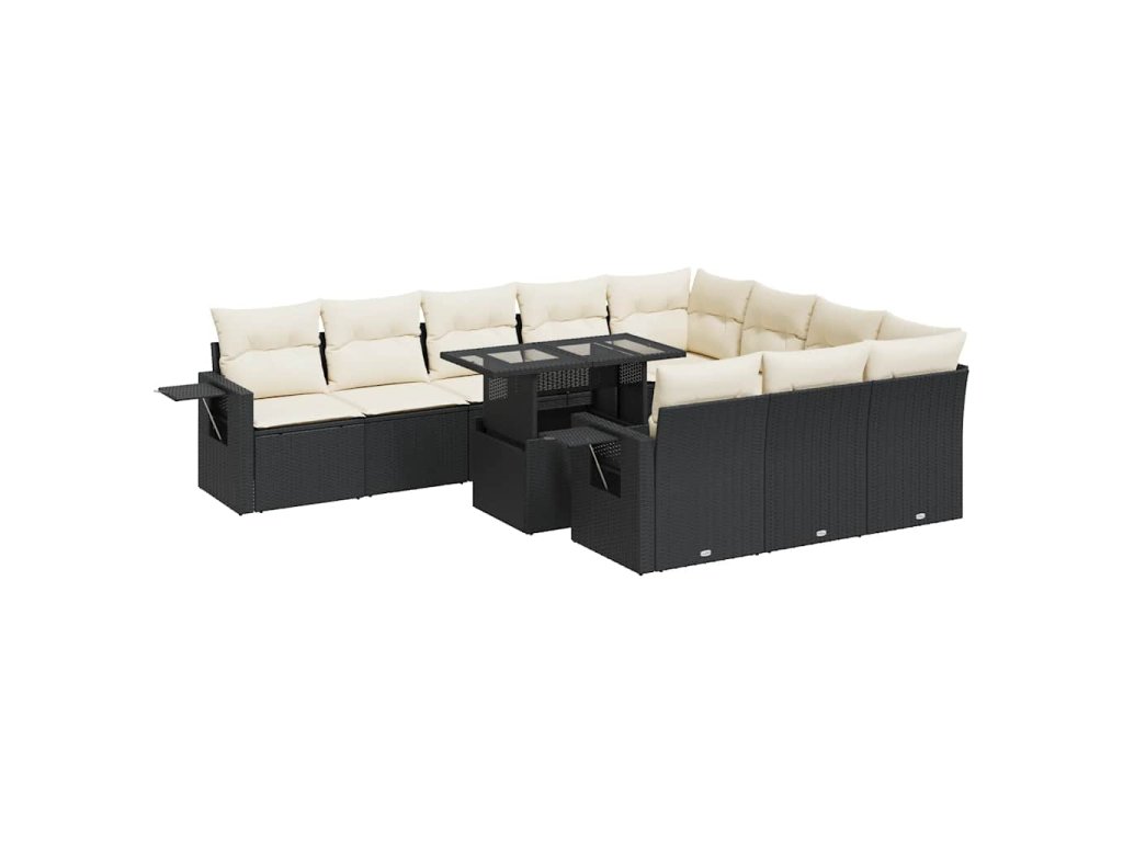 11dílná zahradní sedací souprava s poduškami černá polyratan 3326547