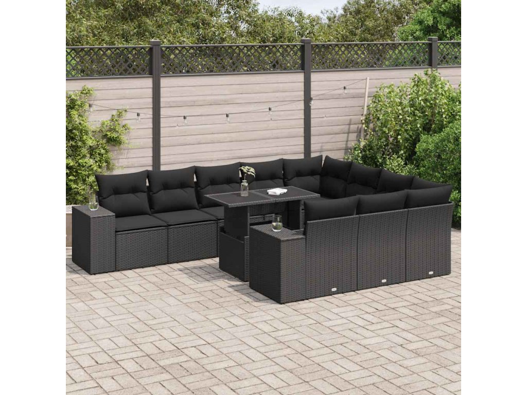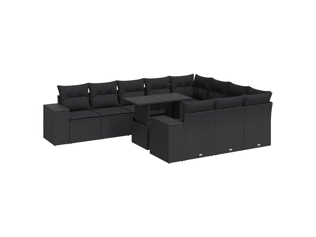 11dílná zahradní sedací souprava s poduškami černá polyratan 3326866