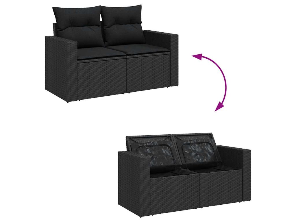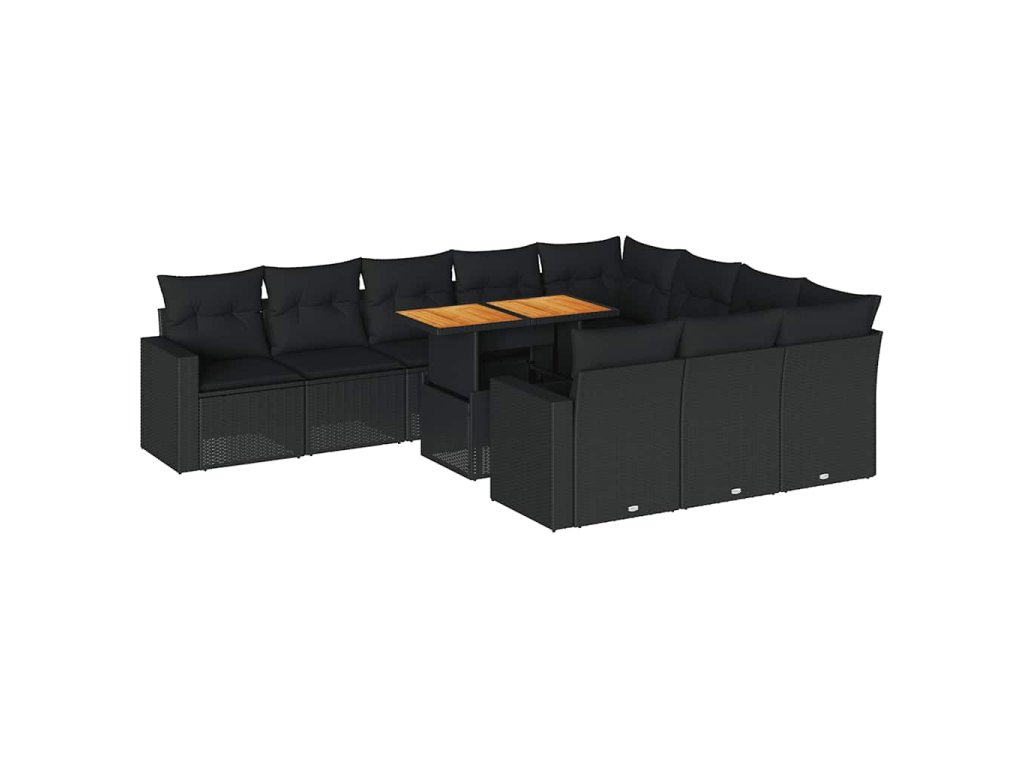 11dílná zahradní sedací souprava s poduškami černá polyratan 3327086