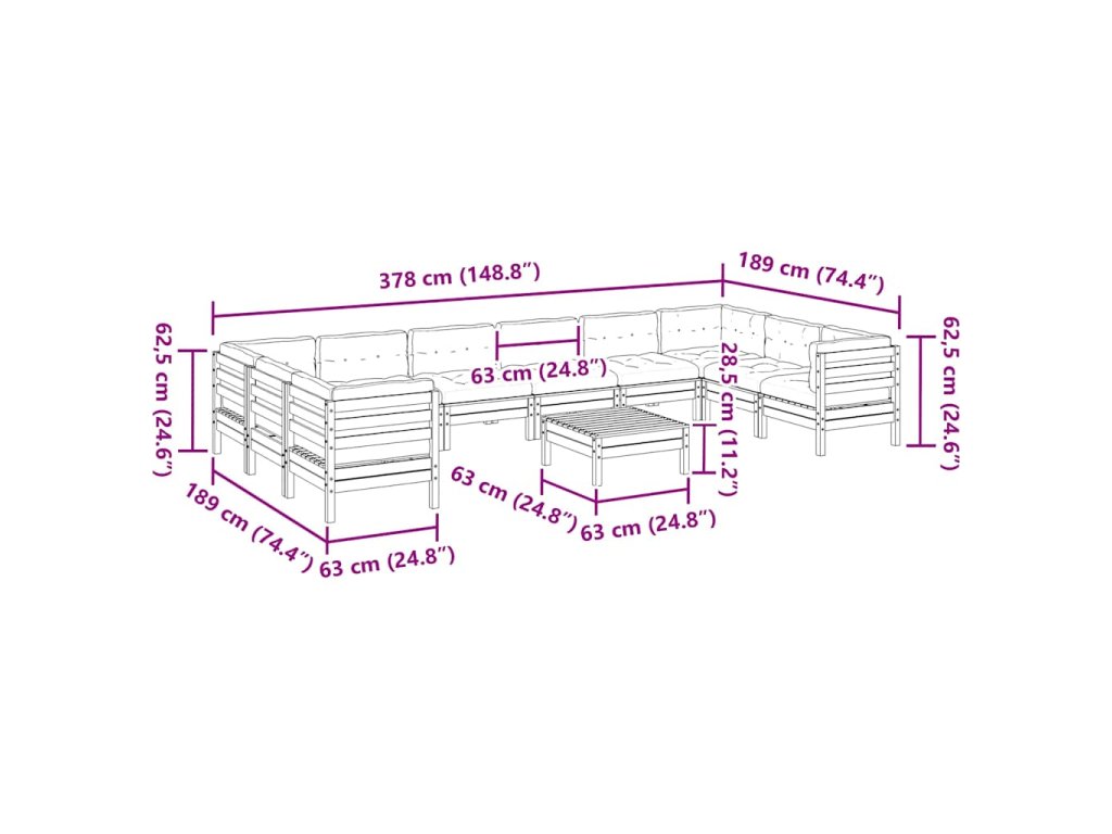 11dílná zahradní sedací souprava s poduškami masivní douglaska 3299649