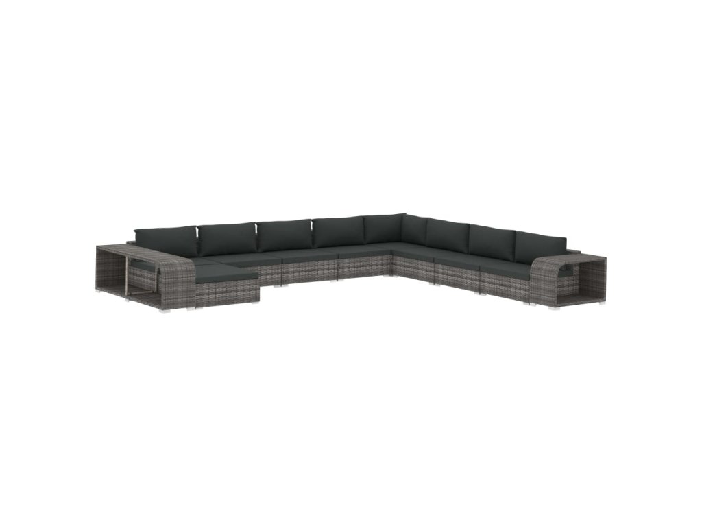 11dílná zahradní sedací souprava s poduškami polyratan šedá 46828