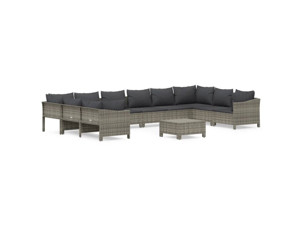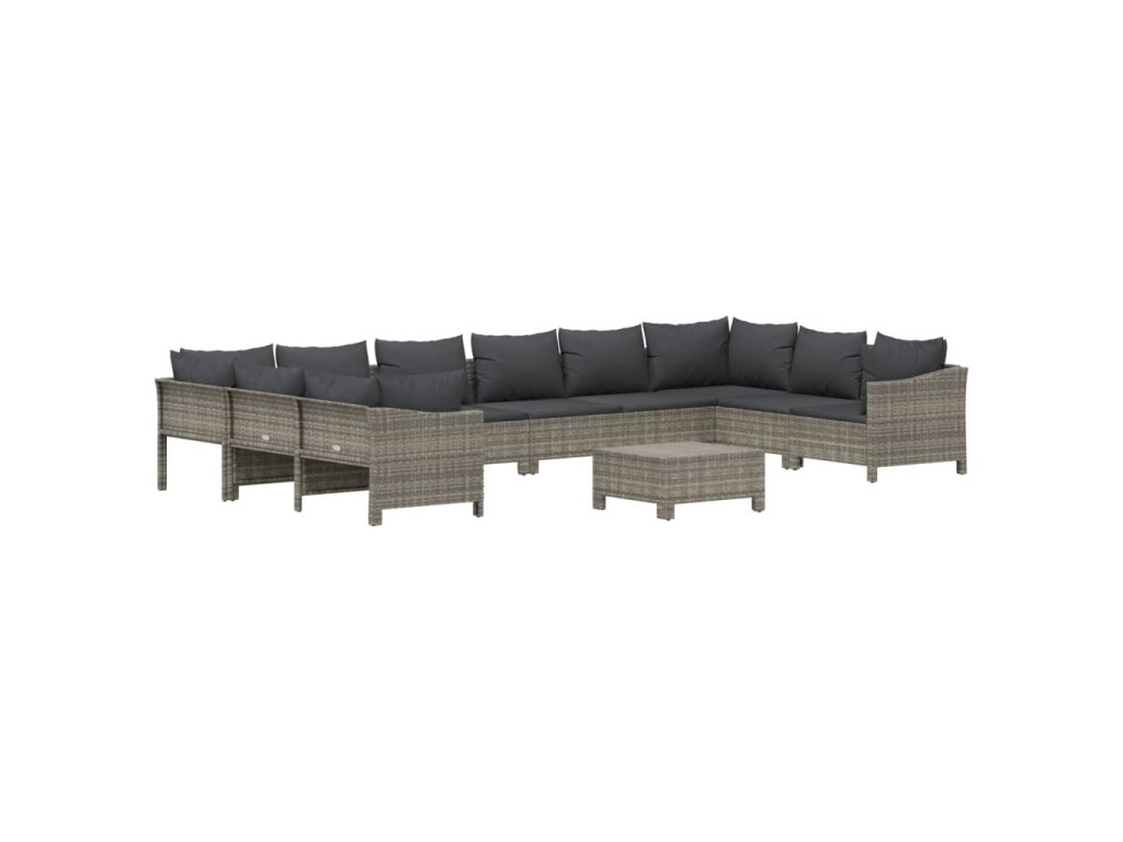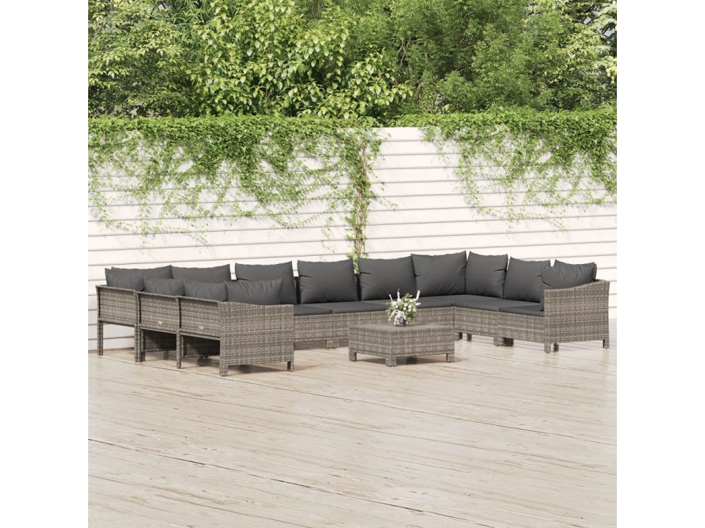 11dílná zahradní sedací souprava s poduškami šedá polyratan 3187307
