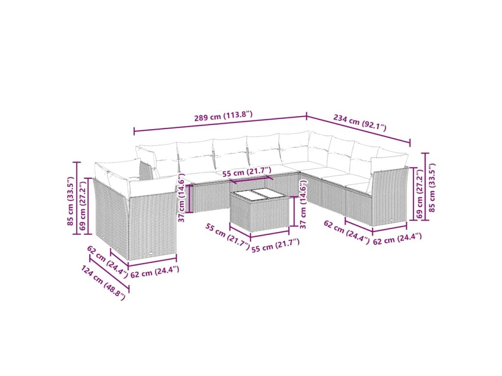 Tato zahradní sedací souprava je dokonalým doplňkem vaší zahrady, terasy nebo dvorku a poskytne vám pohodlné a příjemné místo, kde si můžete povídat s rodinou a přáteli nebo jen tak odpočívat a užívat si pobyt venku.