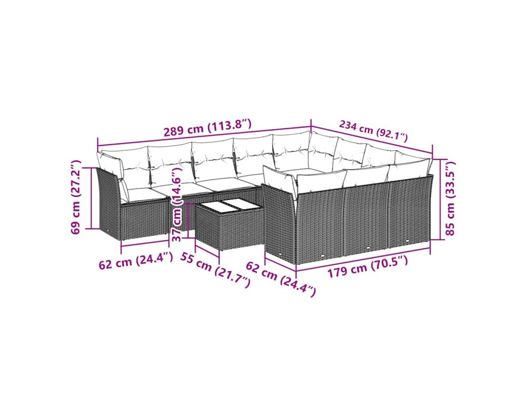 Tato zahradní sedací souprava je dokonalým doplňkem vaší zahrady, terasy nebo dvorku a poskytne vám pohodlné a příjemné místo, kde si můžete povídat s rodinou a přáteli nebo jen tak odpočívat a užívat si pobyt venku.