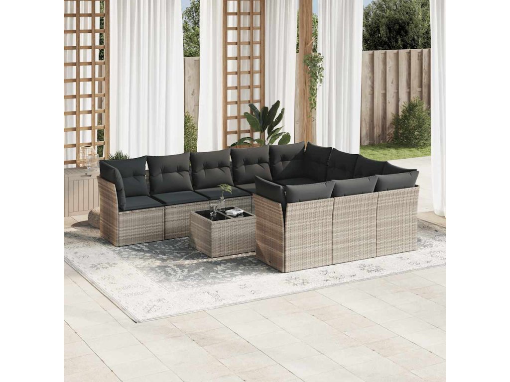 11dílná zahradní sedací souprava s poduškami šedá polyratan 3218232