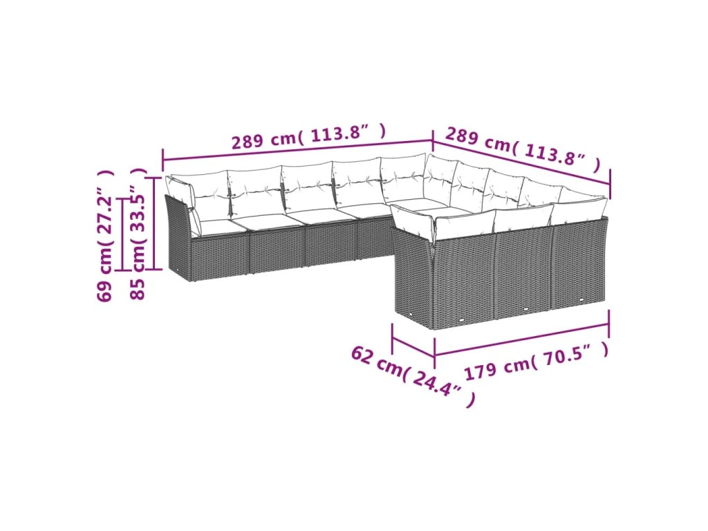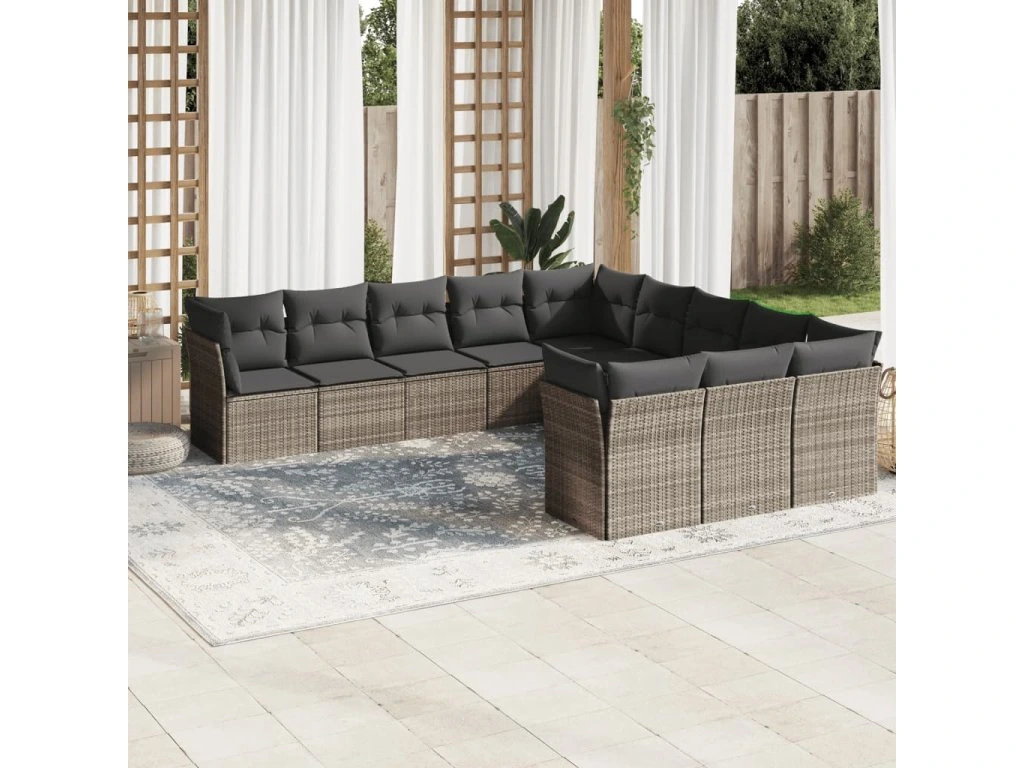 11dílná zahradní sedací souprava s poduškami šedá polyratan 3218412