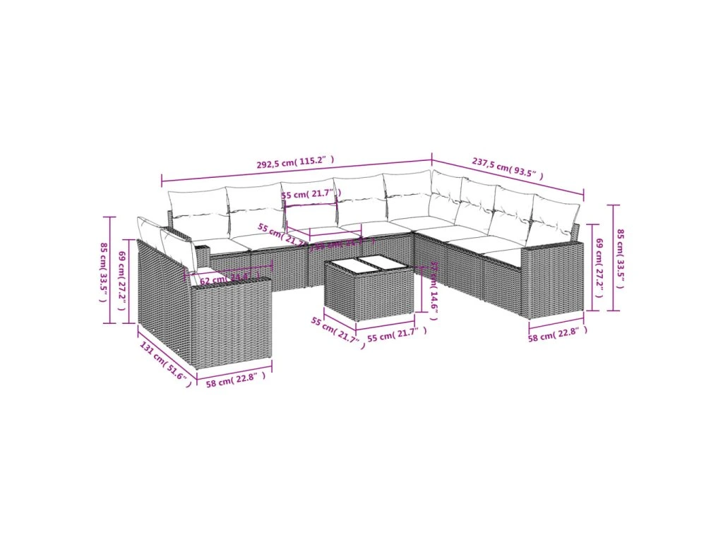 Tato zahradní sedací souprava je dokonalým doplňkem vaší zahrady, terasy nebo dvorku a poskytne vám pohodlné a příjemné místo, kde si můžete povídat s rodinou a přáteli nebo jen tak odpočívat a užívat si pobyt venku.