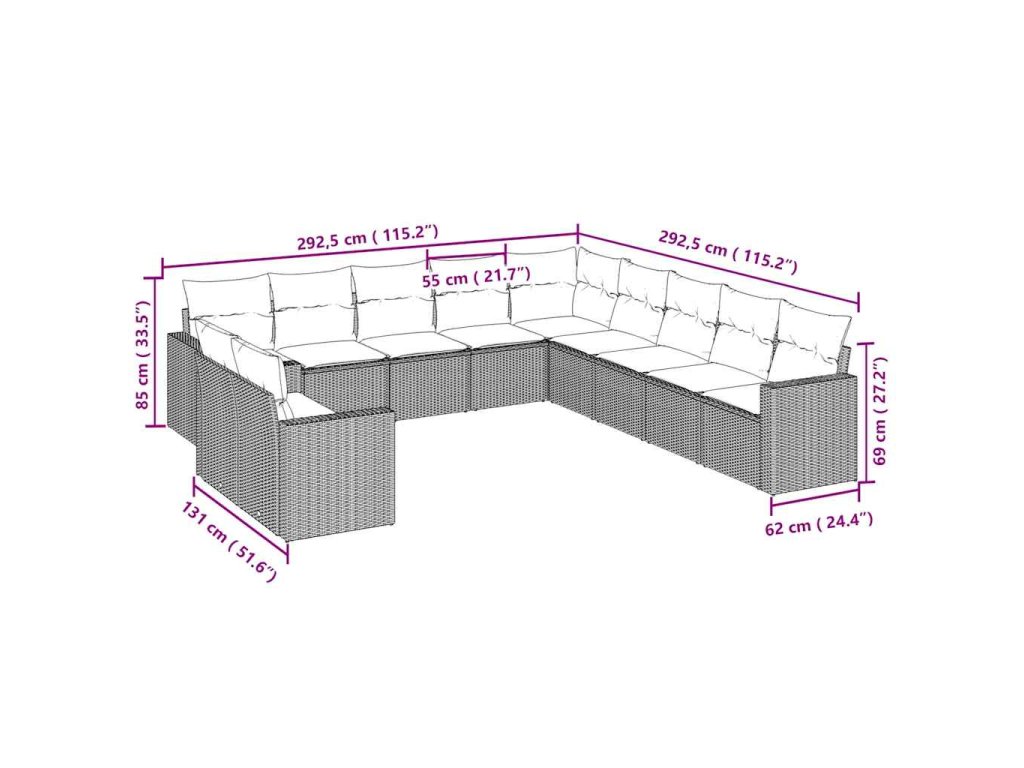 11dílná zahradní sedací souprava s poduškami šedá polyratan 3219182