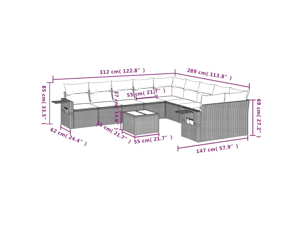 11dílná zahradní sedací souprava s poduškami šedá polyratan 3220721