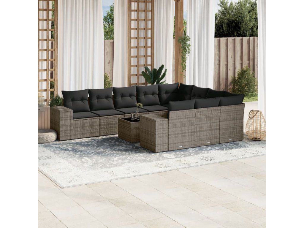 11dílná zahradní sedací souprava s poduškami šedá polyratan 3223099
