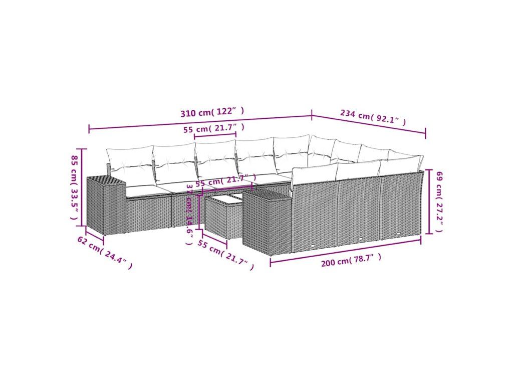 11dílná zahradní sedací souprava s poduškami šedá polyratan 3223101