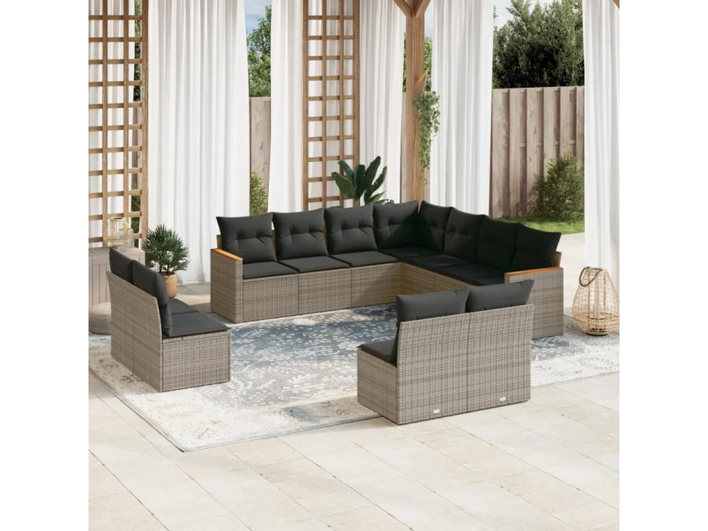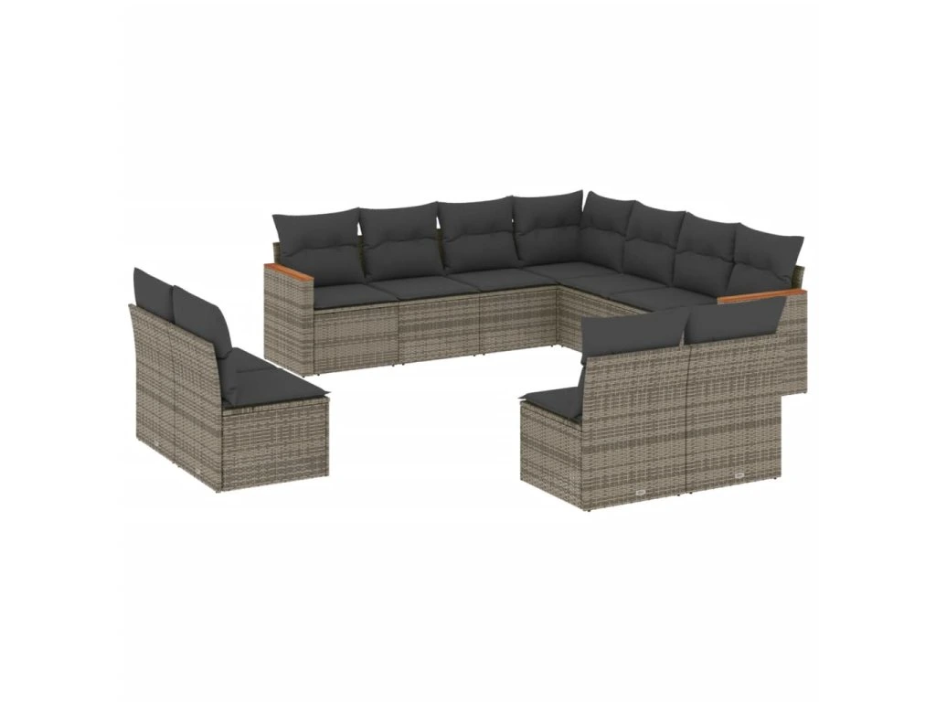11dílná zahradní sedací souprava s poduškami šedá polyratan 3226088