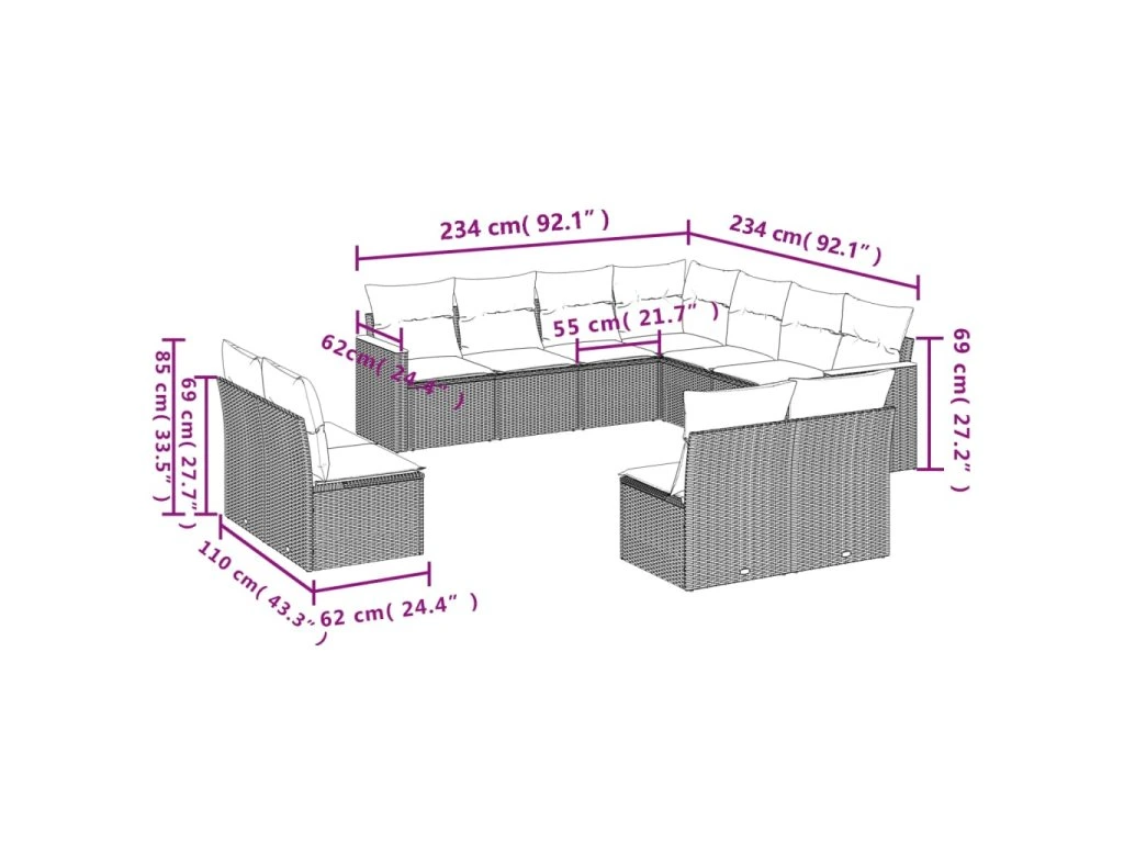 Tato zahradní sedací souprava je dokonalým doplňkem vaší zahrady, terasy nebo dvorku a poskytne vám pohodlné a příjemné místo, kde si můžete povídat s rodinou a přáteli nebo jen tak odpočívat a užívat si pobyt venku.