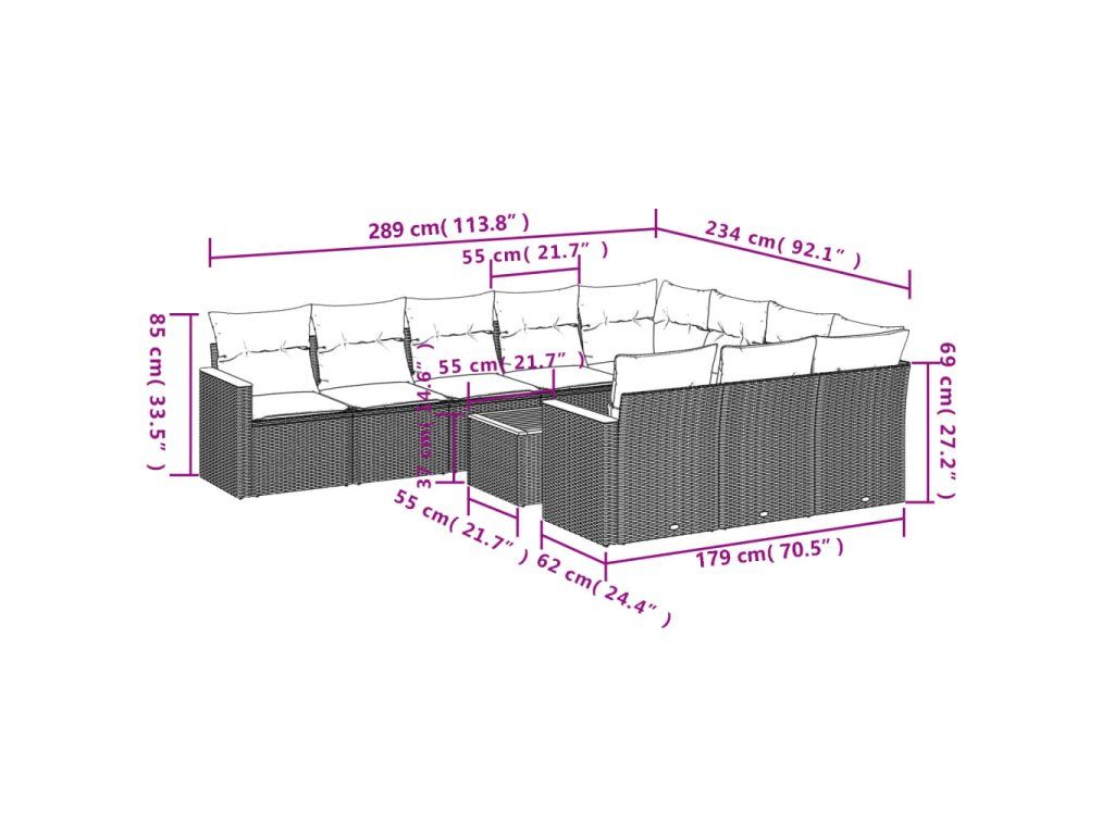 11dílná zahradní sedací souprava s poduškami šedá polyratan 3226347