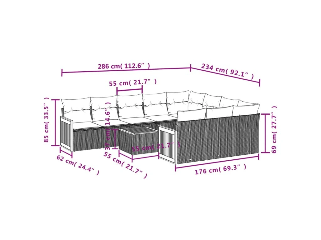 Tato zahradní sedací souprava je dokonalým doplňkem vaší zahrady, terasy nebo dvorku a poskytne vám pohodlné a příjemné místo, kde si můžete povídat s rodinou a přáteli nebo jen tak odpočívat a užívat si pobyt venku.